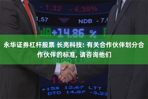 永华证券杠杆股票 长亮科技: 有关合作伙伴划分合作伙伴的标准, 请咨询他们