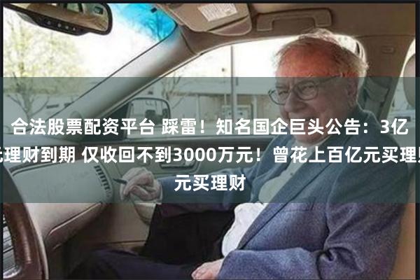合法股票配资平台 踩雷!知名国企巨头公告:3亿元理财到期 仅收回不到3000万元!曾花上百亿元买理财