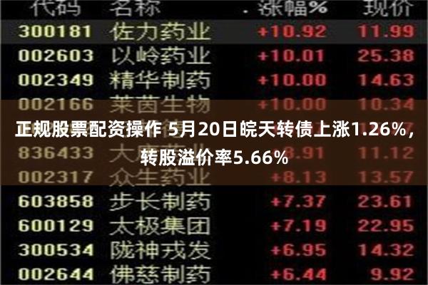 正规股票配资操作 5月20日皖天转债上涨1.26%,转股溢价率5.66%